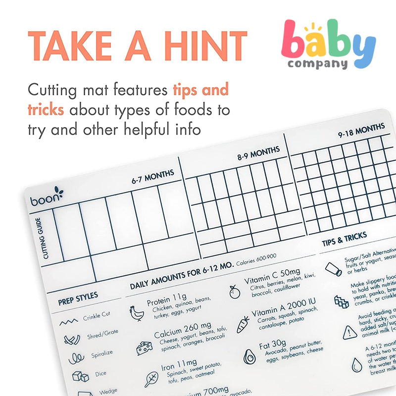 ● The cutting mat gives you a large surface to work on and includes tips and tricks about what types of foods to try, along with other helpful information.