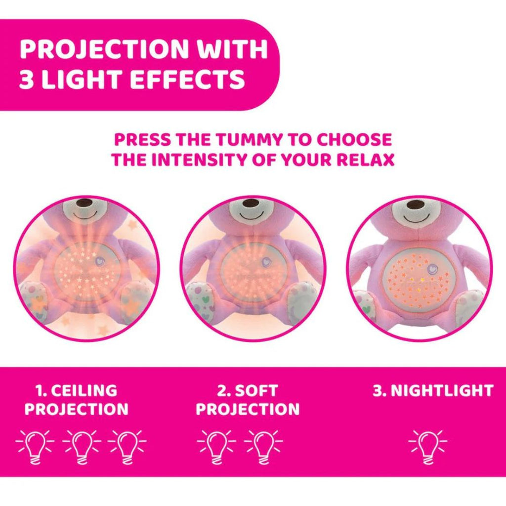 • SOFT & CUDDLY PLUSH TOY - Soft plush projector with spectacular light effects and relaxing melodies to cuddle and soothe the baby.