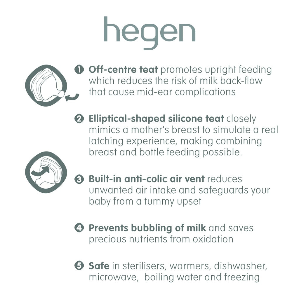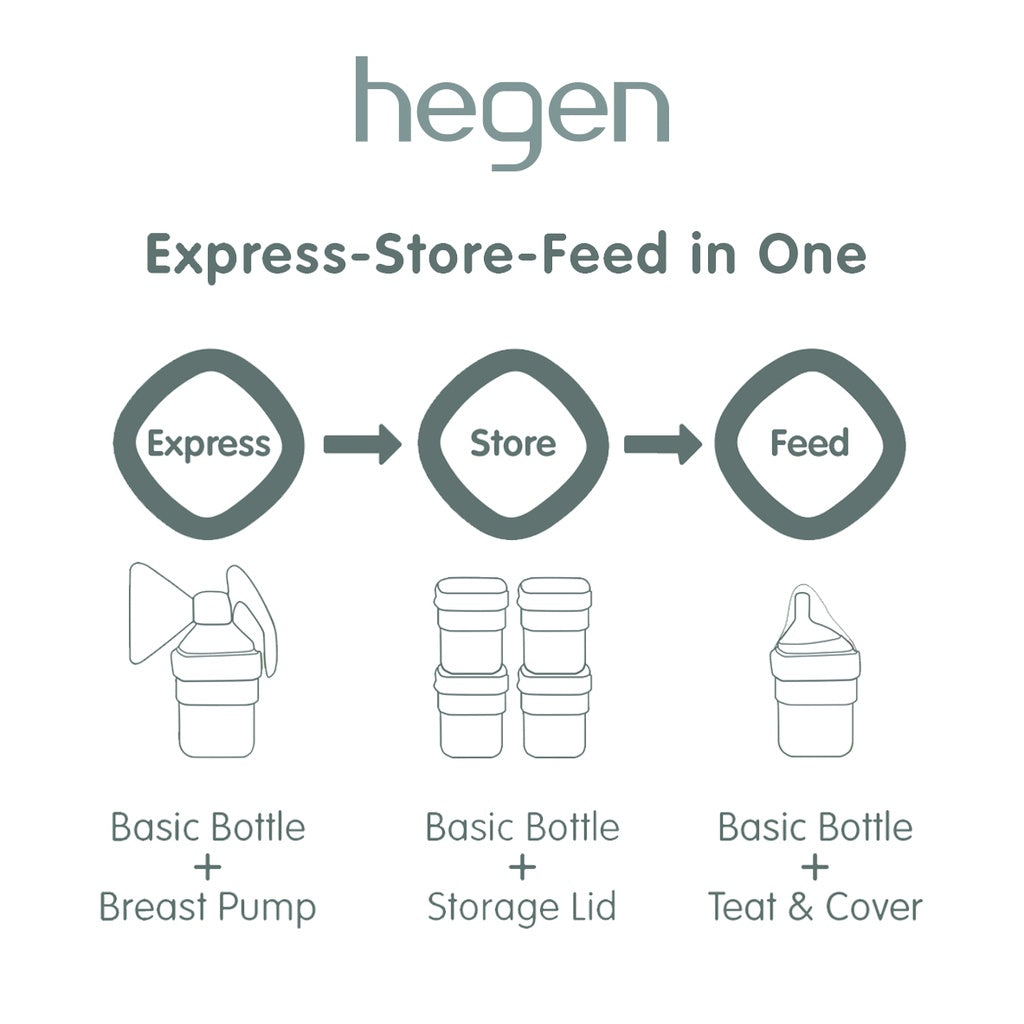 Additional collars and transparent covers are sold separately allowing mothers to seamlessly convert a storage container to a feeding bottle. Simply pair it with a teat flow of your choice (slow/medium/fast/thick feed) to experience the multi-functional, modular benefits of Hegen's Express-Store-Feed system and enjoy the convenience of a hassle-free conversion when it comes to feeding.