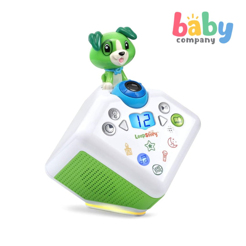 Turn any time into story time with LeapStory™! Develop children’s listening comprehension skills by letting them hear stories read to them, whenever they want. LeapStory™ is not just for bedtime! While a narrator reads the story, watch Scout’s reactions as images and animations are projected onto the wall or ceiling. Preloaded with 80+ stories, poems and songs. Listen to content from four categories: classic stories and poems; myths, legends and fables; sleepy-time stories; and songs. Download more songs, stories and poems for free using LeapFrog Connect™. Personalize your LeapStory™ by recording your own voice reading your child’s favorite story for anytime listening. Spark their imagination with stories! Intended for ages 3-8 years. Requires 4 AA batteries or an AC adapter