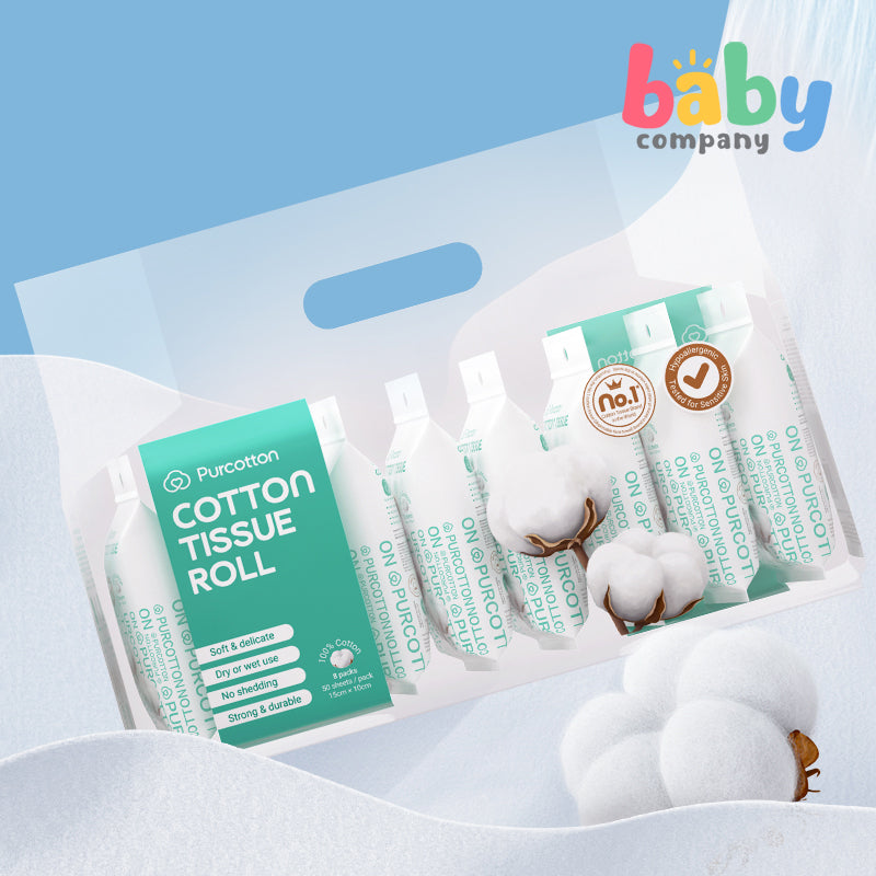 Purcotton Cotton Tissue Roll 50 Sheets / 8 Packs