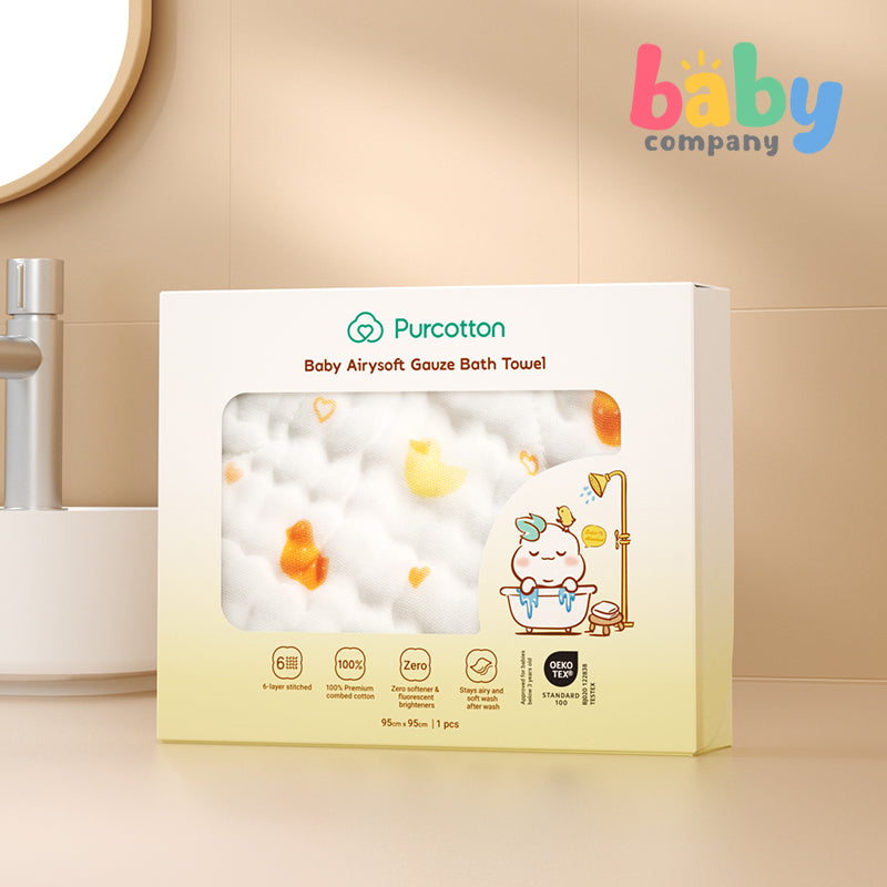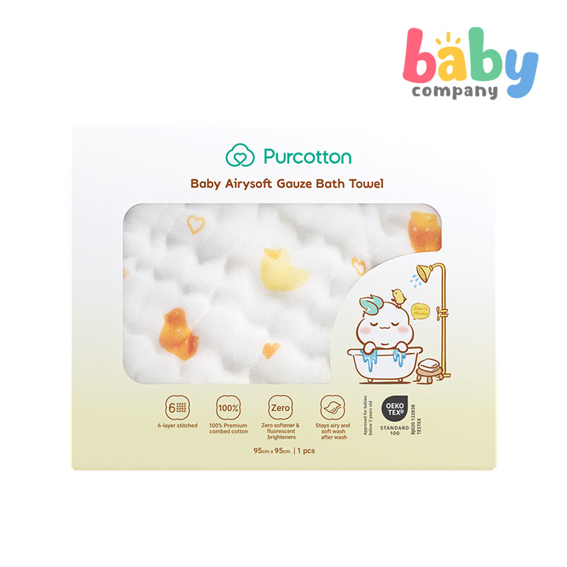 Purcotton Baby Airysoft Gauze Bath Towel Yellow Duckling (95x95cm)