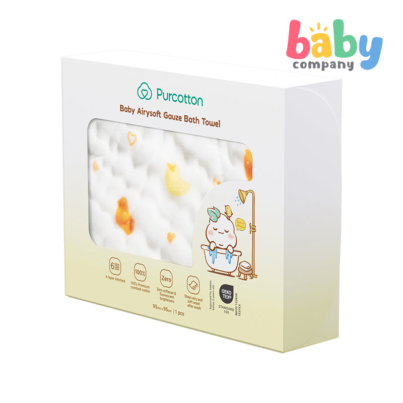 Purcotton Airysoft Gauze 6-Layer Bath Towel - Yellow Duckling (95x95cm)
