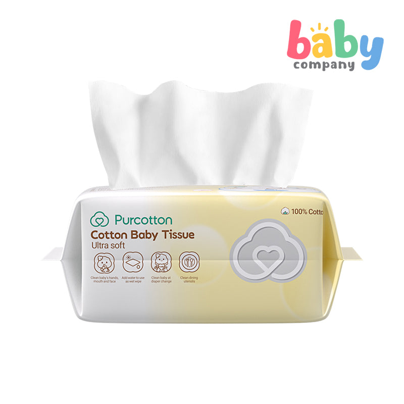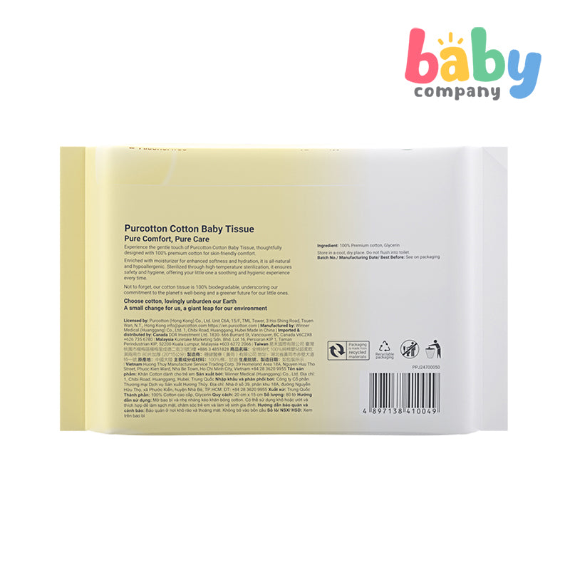 Experience the gentle touch of Purcotton Cotton Baby Tissue, thoughtfully designed with 100% premium cotton for skin-friendly comfort.