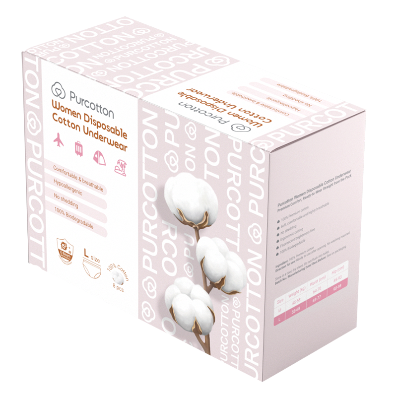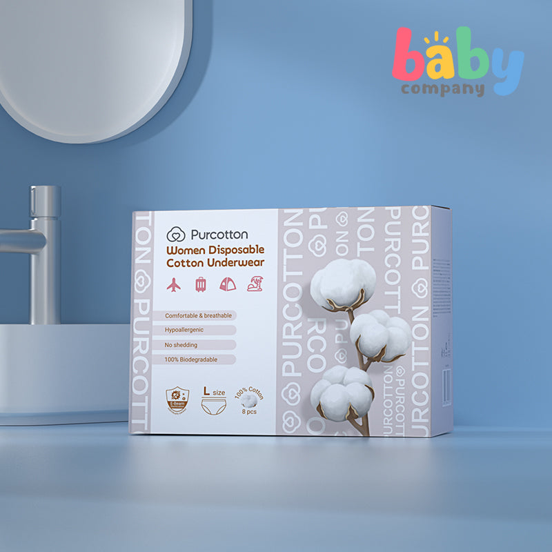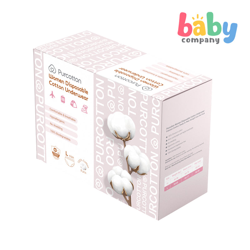 Purcotton Women Disposable Cotton Underwear 8pcs (Large)