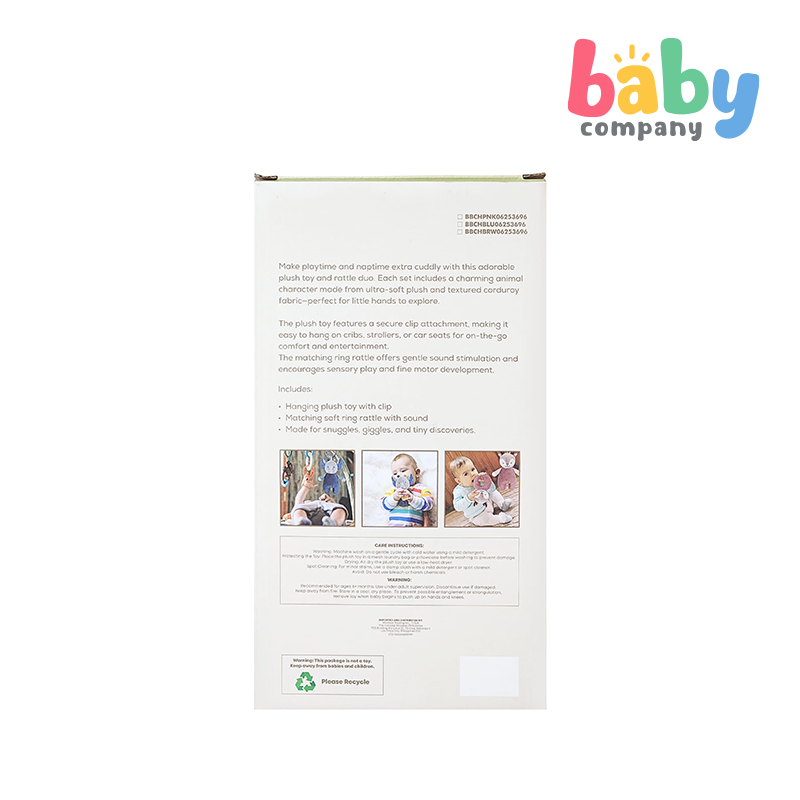 Size: 25 x 18 cm (plush), 15 x 10 cm (rattle)