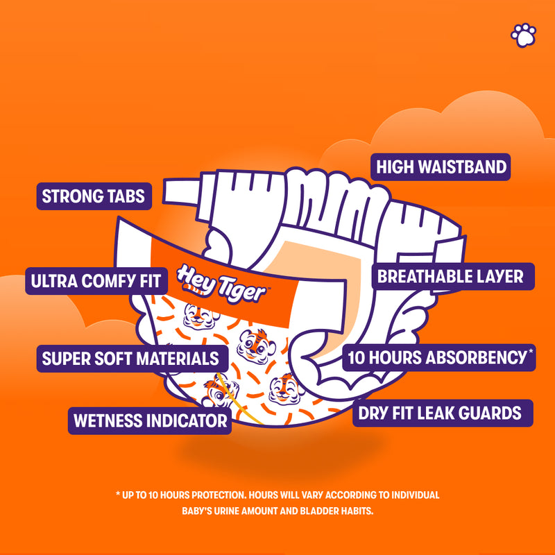 Hey Tiger Comfy Tape Diapers, Jumbo Pack - Small